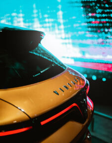Bask in the radiant allure of a vibrant yellow car parked gracefully, exuding an air of bold individuality ..