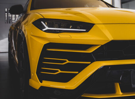 Bask in the radiant allure of a vibrant yellow car parked gracefully, exuding an air of bold individuality ..