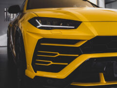 Bask in the radiant allure of a vibrant yellow car parked gracefully, exuding an air of bold individuality ..